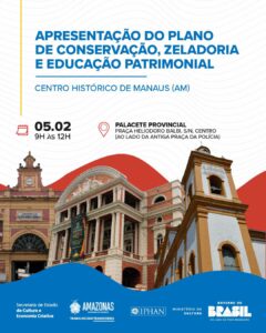 A Superintendência do IPHAN no Amazonas convida a comunidade para a apresentação da programação de elaboração do Plano de Conservação, Zeladoria e Educação Patrimonial do Centro Histórico.