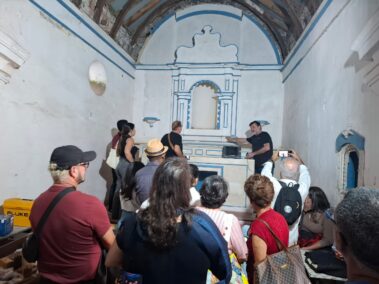 Como parte das ações de zeladoria e educação patrimonial durante a restauração da Igreja de São Benedito pelo Estúdio Sarasá, foi realizada uma oficina acerca de elementos construtivos e técnicas tradicionais, reunindo moradores, estudantes e interessados em conhecer os materiais e o saber-fazer na construção e preservação da capela.