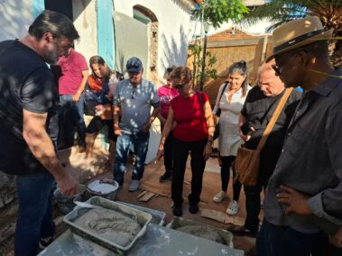 A atividade abordou as diferenças entre os materiais, os saberes construtivos tradicionais e os impactos do uso de produtos inadequados em bens tombados.