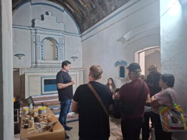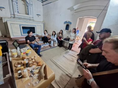 Os participantes tiveram contato direto com as argamassas à base de cal, aprendendo sobre suas propriedades e sobre a importância da “respiração” das paredes, algo que as argamassas tradicionais permitem, ao contrário das argamassas cimentícias modernas, que podem reter umidade e prejudicar a conservação de edifícios históricos.